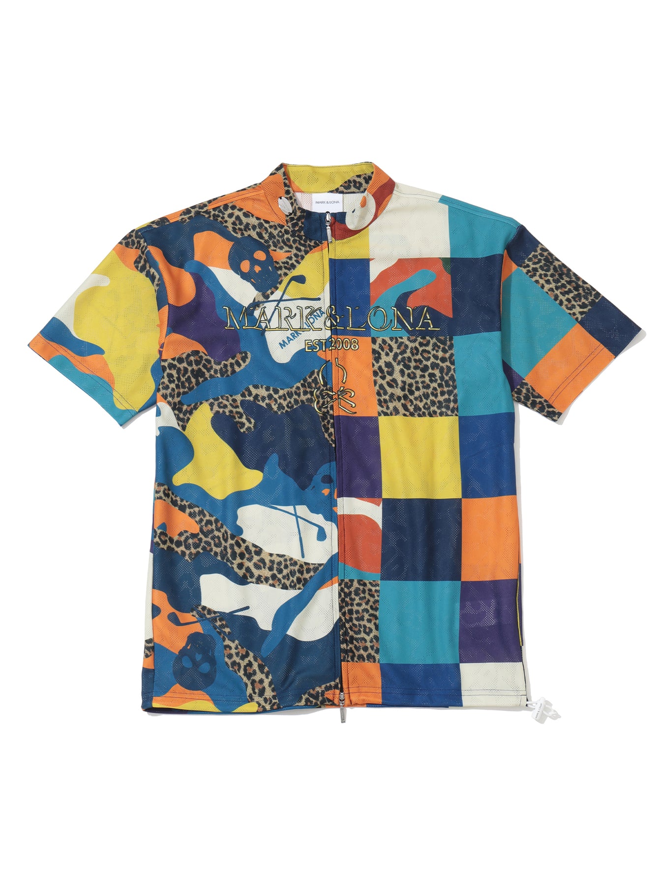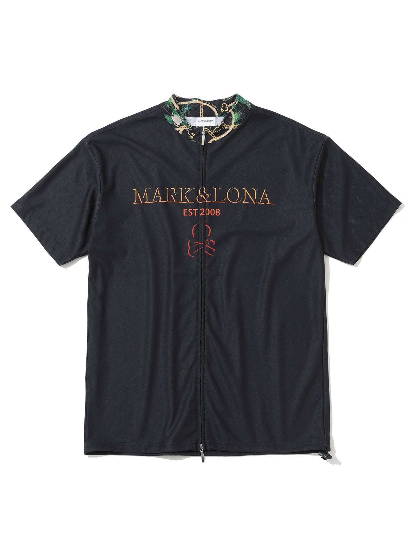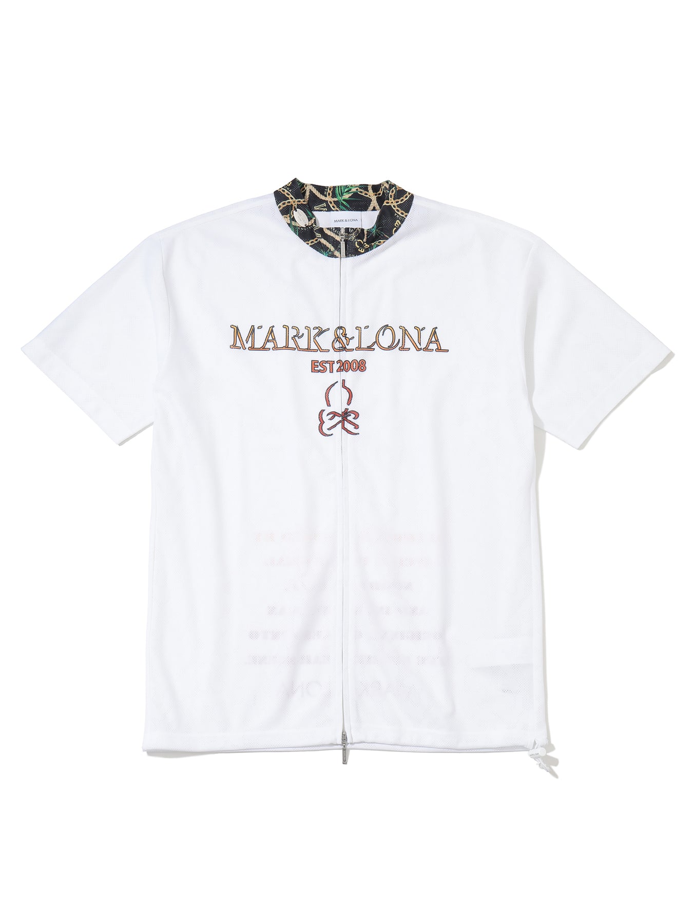 ・메쉬 자카드 소재를 사용한 풀집업 모크넥 티셔츠