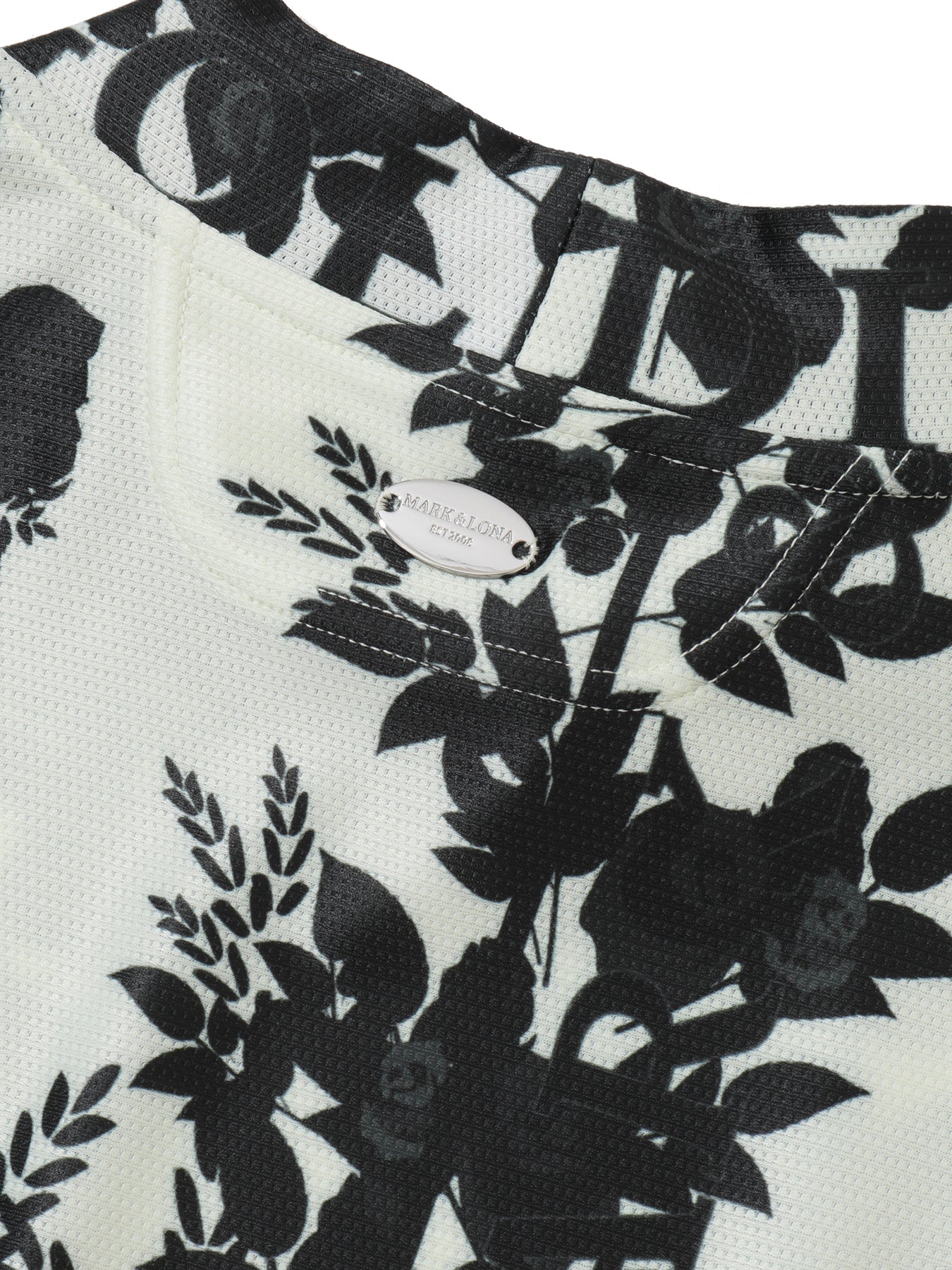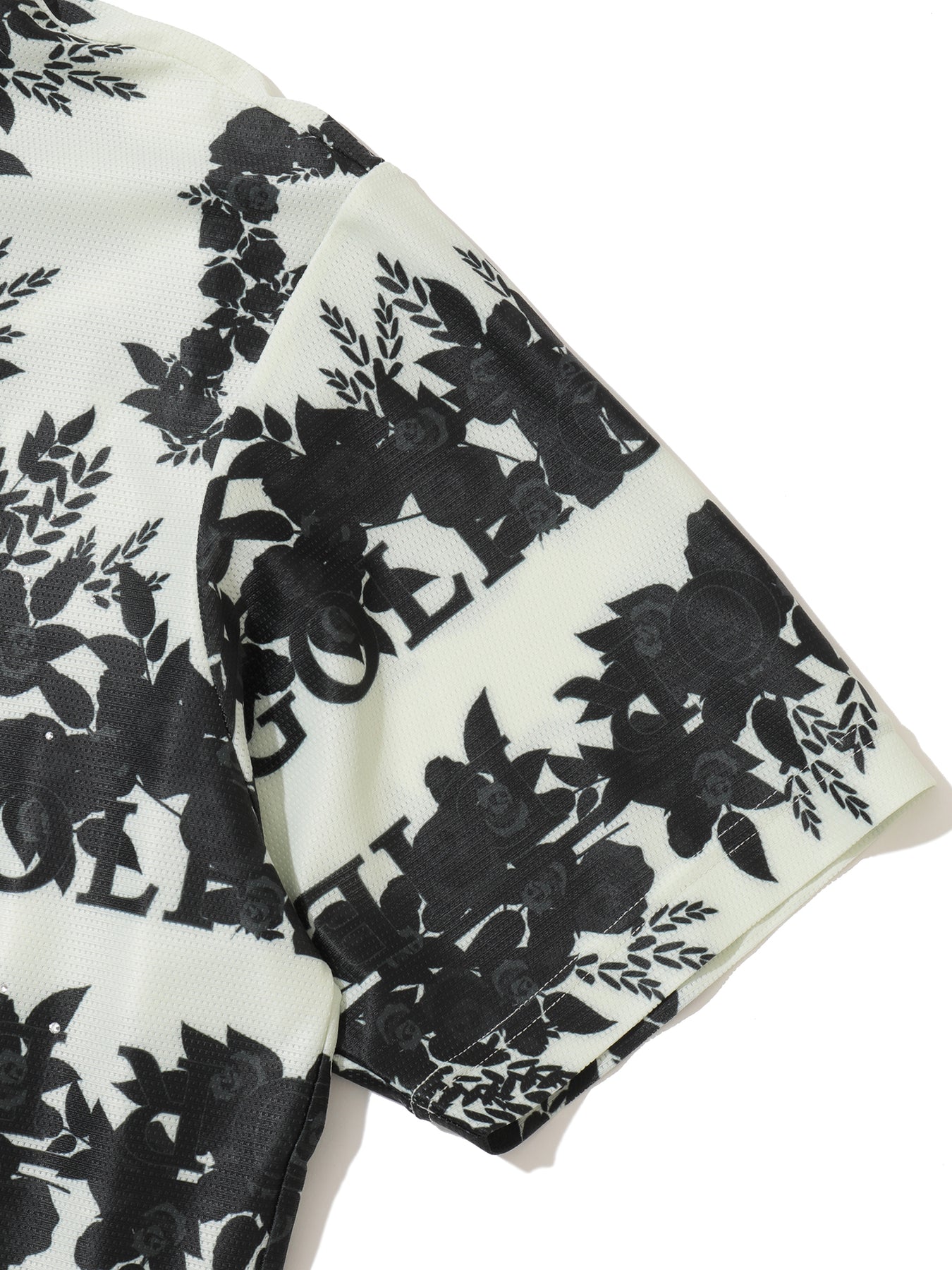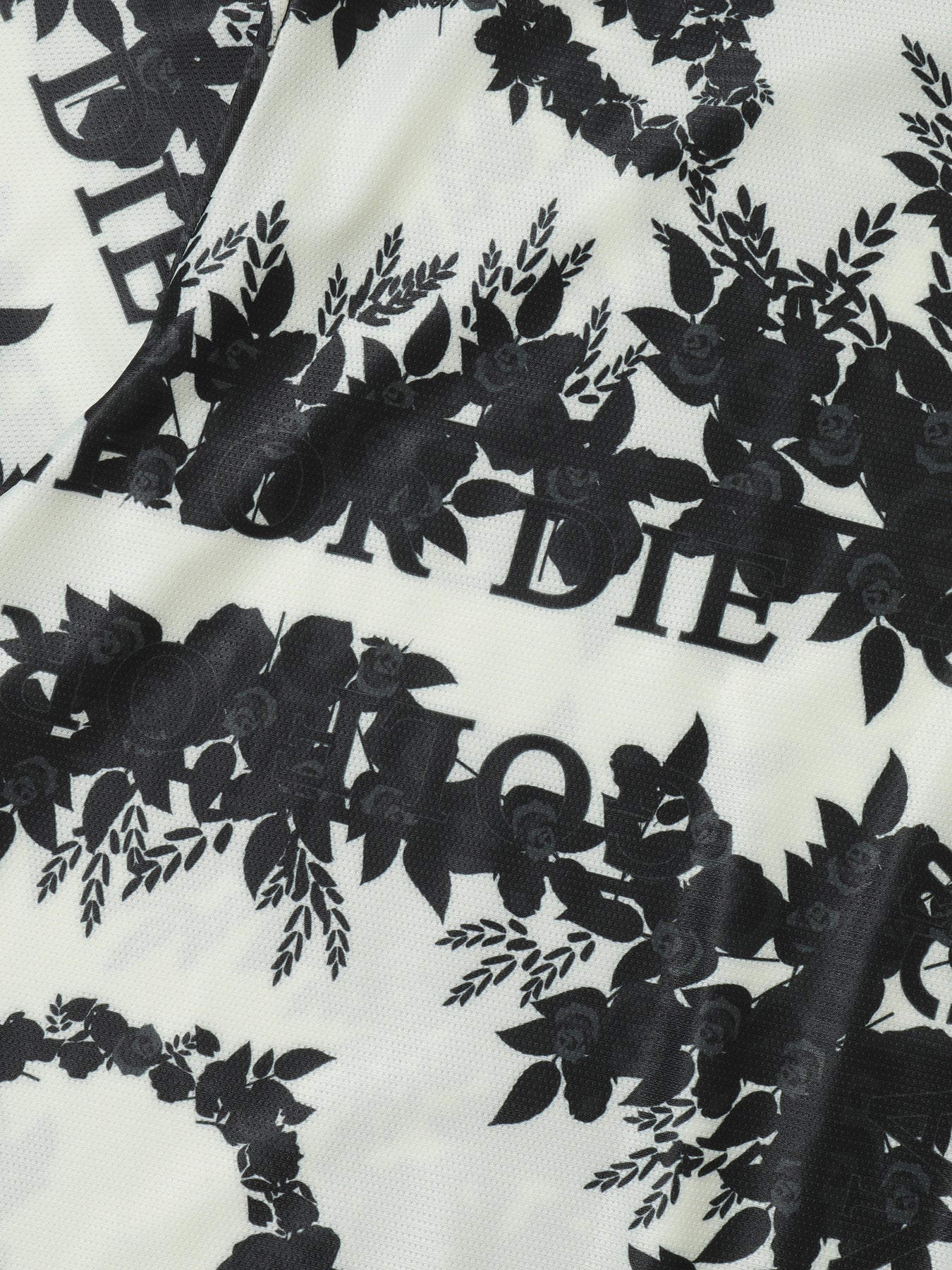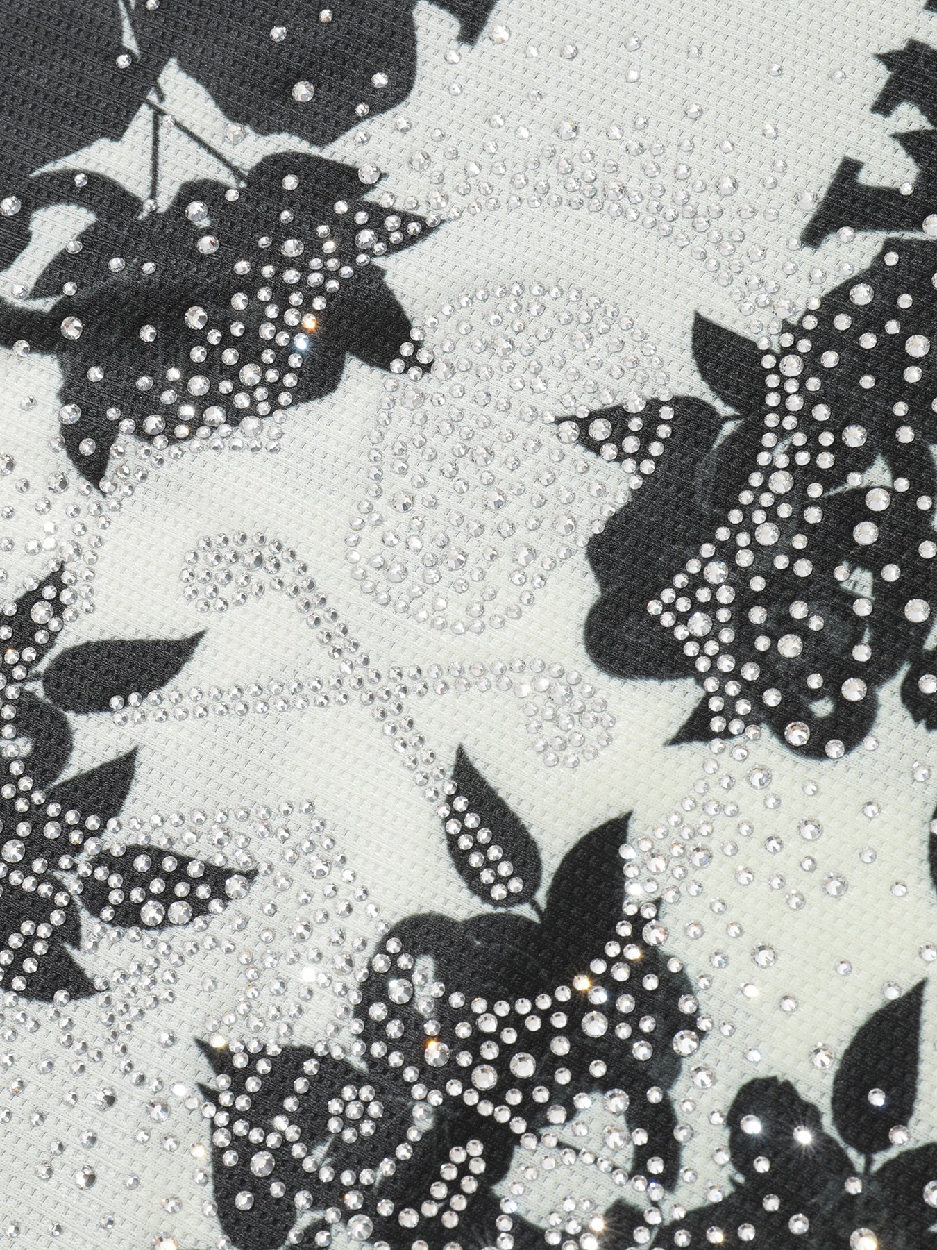 ・로즈와 스컬 패턴이 돋보이는 스와로브스키 스컬 모크넥 티셔츠