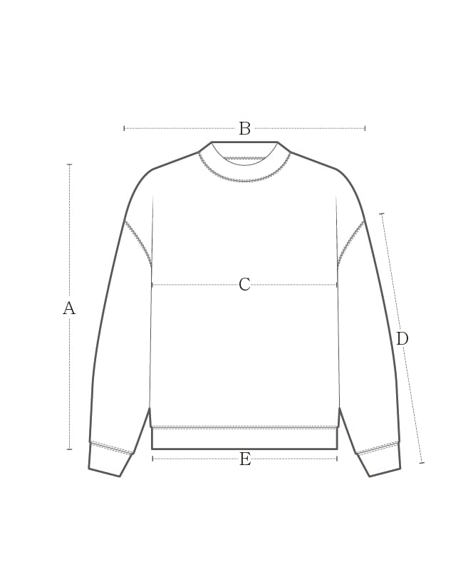 | 사이즈(cm) | A.총장 | B.어깨 | C.가슴 | D.소매길이 | E.밑단 |