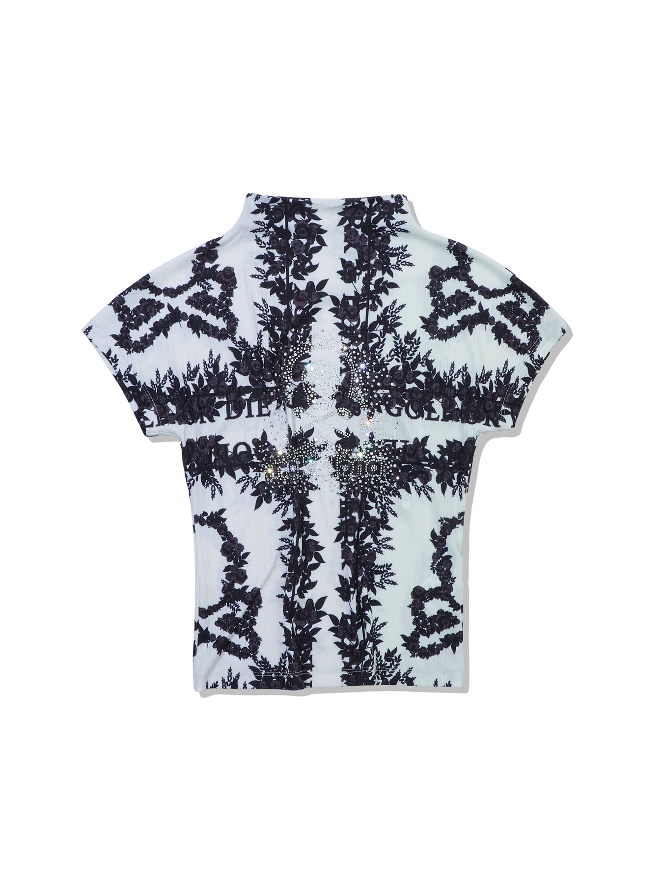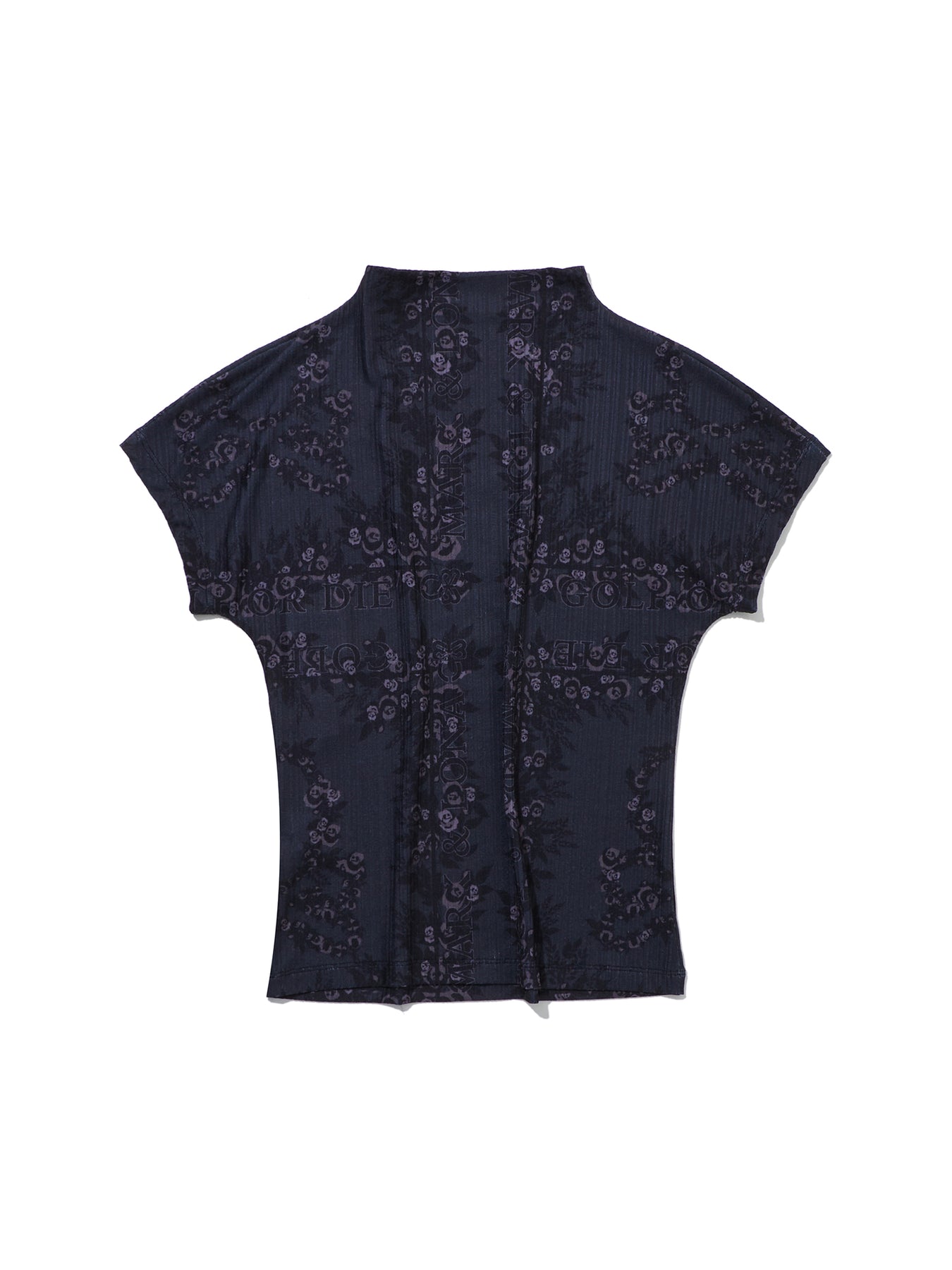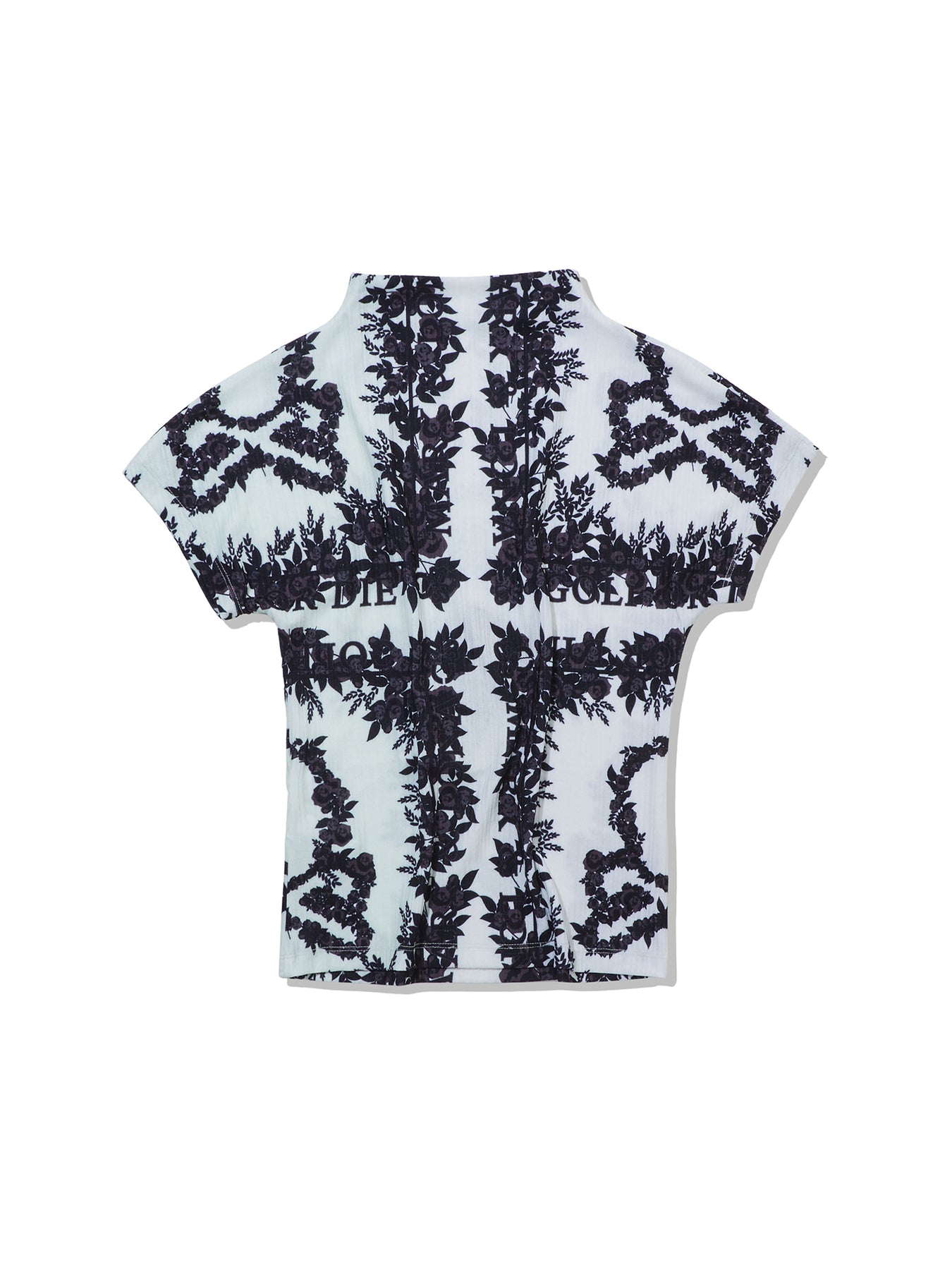 • 조직감이 있는 폴리 스판 소재의 시즌 패턴 반소매 하이넥 티셔츠 아이템