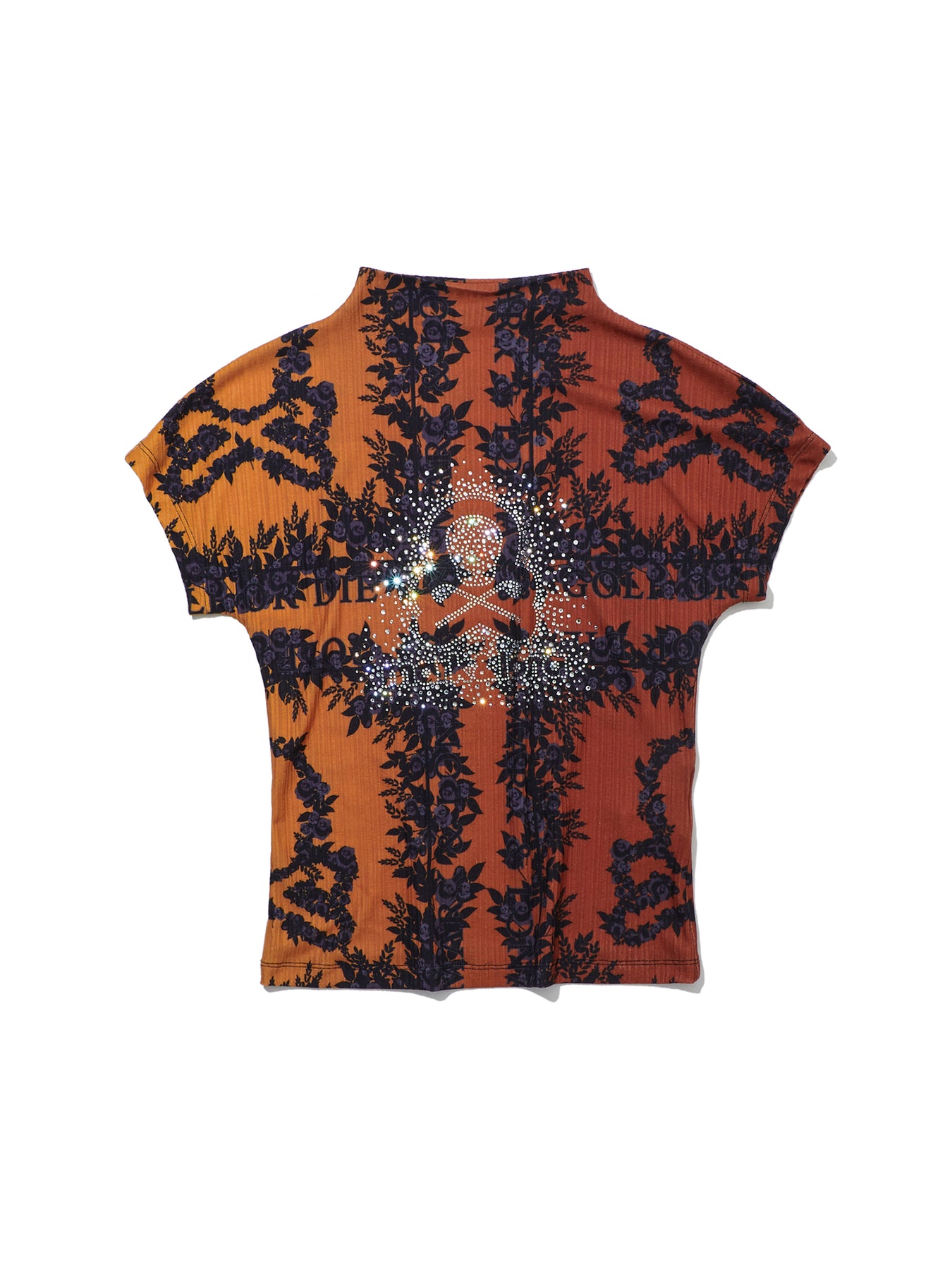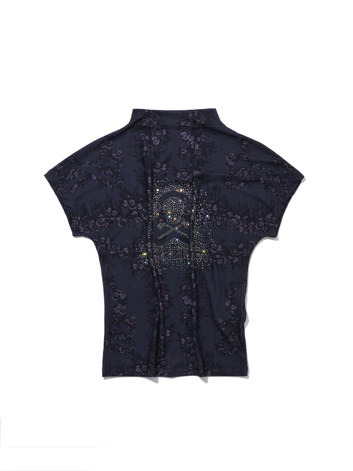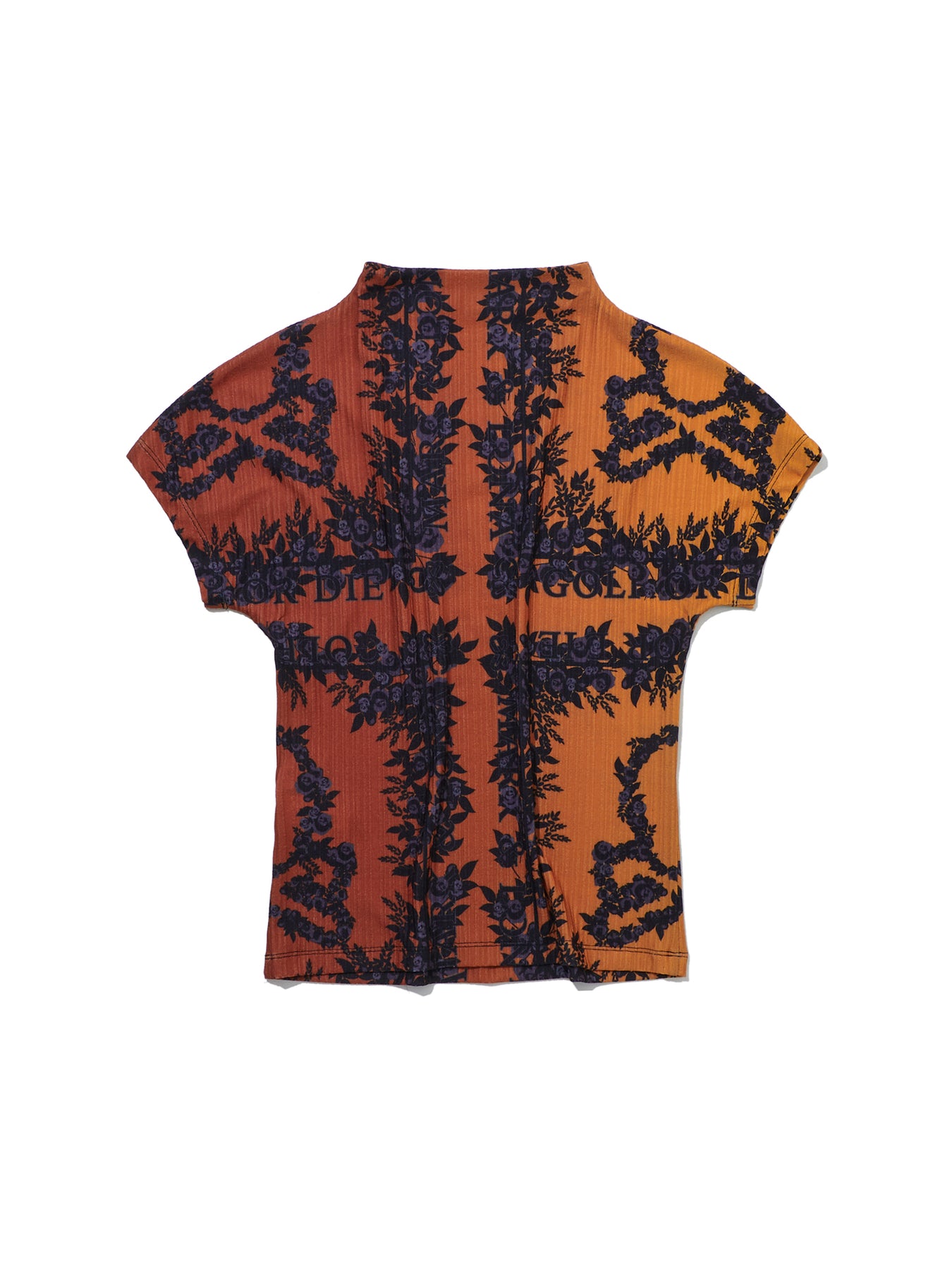 • 조직감이 있는 폴리 스판 소재의 시즌 패턴 반소매 하이넥 티셔츠 아이템