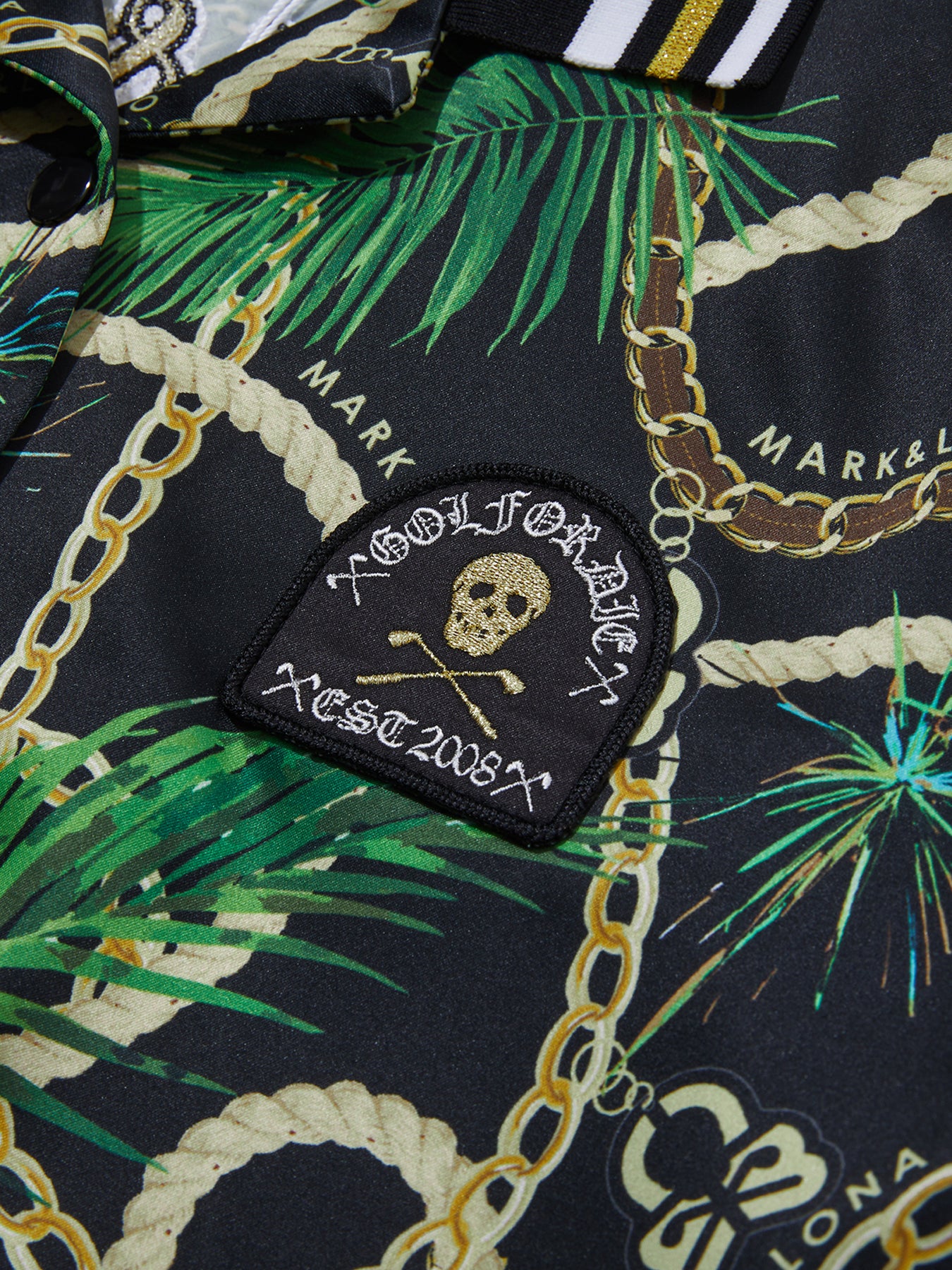• 가슴 자수 와펜과 등판 빅로고 체인자수로 포인트를 줌